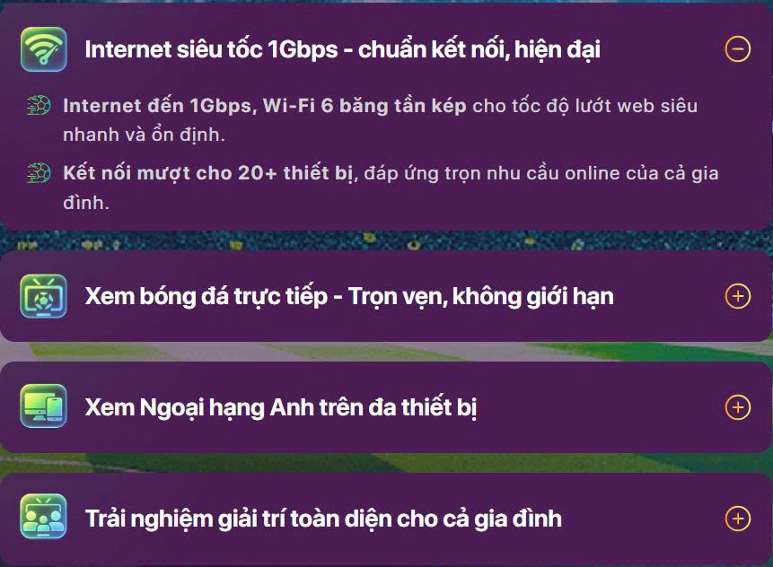 Gói combo thể thao: Internet 1G + Truyền Hình 4K + Ngoại Hạng Anh chỉ từ 299K/Tháng